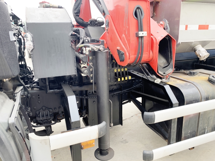 1.該車裝備有吊機、垃圾箱及液壓機構(gòu),用于將裝載有生活垃圾的深埋式垃圾桶自行將垃圾壓實裝入,轉(zhuǎn)運和卸料的功用,卸載方式為后卸式;選裝垃圾箱結(jié)構(gòu);僅采用底盤軸距(mm):5350+1350;2.選裝吊機型號分別為:HIAB 099/HIAB 112/PK10000/SPK10000/SQZ132,對應(yīng)吊機自重分別為(kg):1465,1520,1129,1356,2850,對應(yīng)吊機最大起升載荷分別為(kg):3250,3550,5580,5580,6300;3.側(cè)防護,后防護采用材料/Q235;連接方式為焊接加螺栓連接,后部防護裝置斷面尺寸(寬×高):60×120(mm),后部防護離地高度:490mm;4.發(fā)動機D6.7NS6B290、DDi75E350-60、DDi75E300-60對應(yīng)油耗值均為:32.0L/100km;5.該車裝ABS;ABS型號/生產(chǎn)廠家:3631010-C2000/東科克諾爾商用車制動系統(tǒng)(十堰)有限公司,ABS 8/東科克諾爾商用車制動系統(tǒng)(十堰)有限公司,4460046450/威伯科汽車控制系統(tǒng)(中國)有限公司,安裝帶有衛(wèi)星定位功能的行駛記錄儀;6.隨底盤選裝駕駛室前面罩;D6.7NS6B290發(fā)動機可選裝后背式排氣管;駕駛室前角擾流板為選裝件;前保險杠及前部燈具和后視鏡,駕駛室頂部中間三個裝飾燈為選裝件,前霧燈為選裝件,駕駛室前風(fēng)窗上部扶手為選裝件.可選裝ETC車載裝置.
