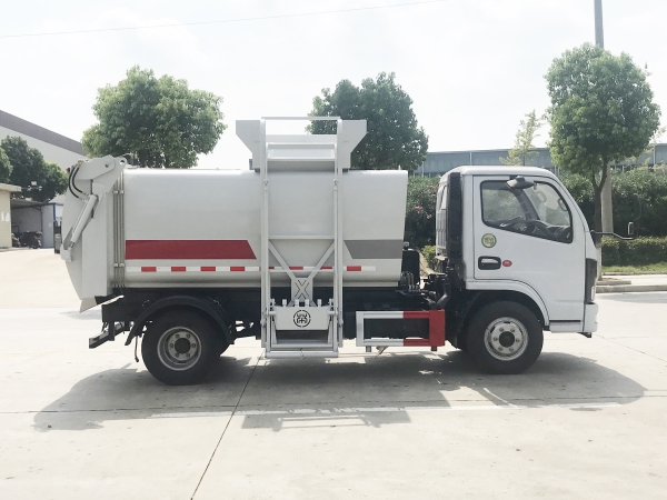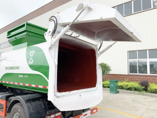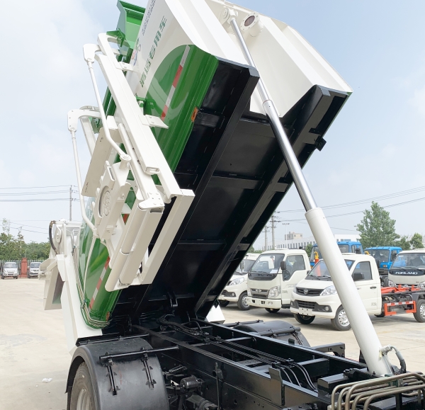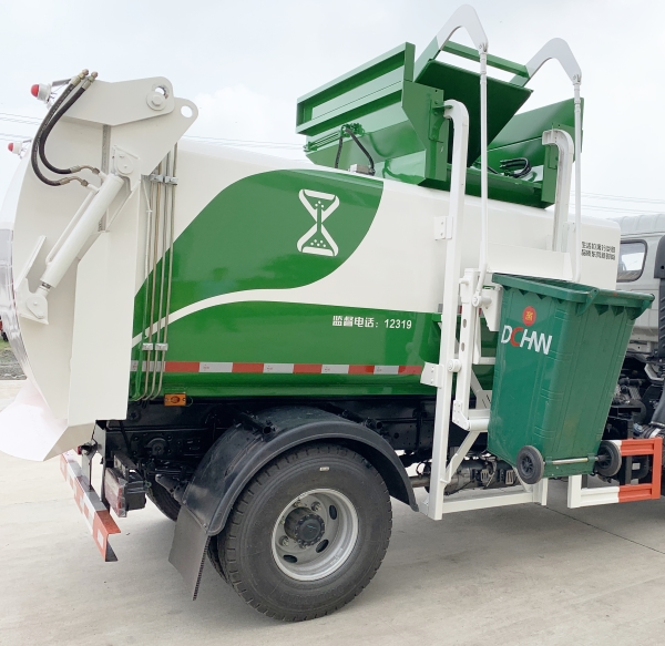 餐廚垃圾車是一種用于收集和運輸生活垃圾、食品垃圾(泔水)及城市淤泥的專用車輛。采用側(cè)提桶上料方式進行餐廚垃圾收集,采用自卸方式進行卸料。先進的弧形進料口設計配上完美得液壓刮板系統(tǒng),使裝料更加快捷和順暢,尾門密封液壓鎖緊系統(tǒng),確保運輸途中滴水不漏。 主要結(jié)構(gòu):汽車底盤、垃圾箱體、底架側(cè)提桶機構(gòu)、后門總成、液壓刮板系統(tǒng)、液壓系統(tǒng)和電控系統(tǒng)。液壓系統(tǒng)及電控系統(tǒng)由油泵、油缸、郵箱、電液閥、PLC單元、行程開關和開關等組成。同時本產(chǎn)品選配高壓清洗系統(tǒng),自動稱重系統(tǒng)和衛(wèi)星定位互聯(lián)網(wǎng)系統(tǒng),自帶水箱,可以在現(xiàn)場對本車及垃圾桶進行沖洗。是城鎮(zhèn)餐廚垃圾收集運輸?shù)睦硐牍ぞ摺?/div>