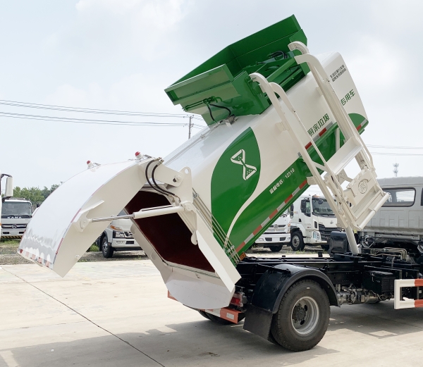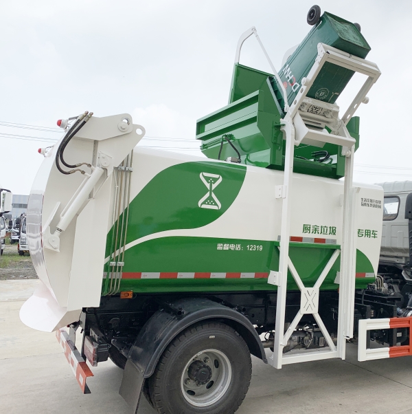 餐廚垃圾車是一種用于收集和運(yùn)輸生活垃圾、食品垃圾(泔水)及城市淤泥的專用車輛。采用側(cè)提桶上料方式進(jìn)行餐廚垃圾收集,采用自卸方式進(jìn)行卸料。先進(jìn)的弧形進(jìn)料口設(shè)計(jì)配上完美得液壓刮板系統(tǒng),使裝料更加快捷和順暢,尾門密封液壓鎖緊系統(tǒng),確保運(yùn)輸途中滴水不漏。 主要結(jié)構(gòu):汽車底盤、垃圾箱體、底架側(cè)提桶機(jī)構(gòu)、后門總成、液壓刮板系統(tǒng)、液壓系統(tǒng)和電控系統(tǒng)。液壓系統(tǒng)及電控系統(tǒng)由油泵、油缸、郵箱、電液閥、PLC單元、行程開關(guān)和開關(guān)等組成。同時(shí)本產(chǎn)品選配高壓清洗系統(tǒng),自動(dòng)稱重系統(tǒng)和衛(wèi)星定位互聯(lián)網(wǎng)系統(tǒng),自帶水箱,可以在現(xiàn)場對(duì)本車及垃圾桶進(jìn)行沖洗。是城鎮(zhèn)餐廚垃圾收集運(yùn)輸?shù)睦硐牍ぞ摺?/div>
