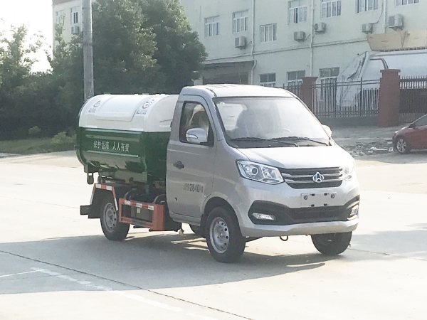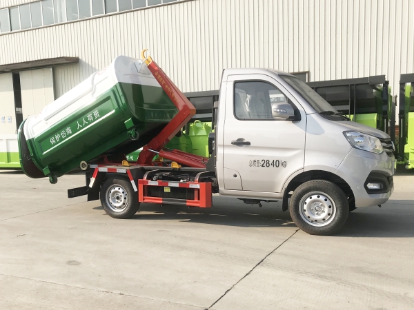 車廂可卸載式垃圾車,又稱勾臂式垃圾車、拉臂式垃圾車。該車廣泛適用與城市街道學校垃圾處理,可一車配備多個斗,各個垃圾點放置多個,帶自卸功能,液壓操作,方便傾倒。在平日里可將車載垃圾箱放置到各個垃圾收集站,待垃圾收集滿后,該車可直接開赴至垃圾站,通過液壓系統(tǒng)的操控,可將垃圾車后座上加裝的勾臂放下,掛住站內(nèi)垃圾箱前端的連接點,將垃圾箱拉至車體的后座上,此時即可啟動車輛,將垃圾運送至垃圾處理站內(nèi),進行自卸式傾倒。該車主要的優(yōu)點就是可一車配多斗,一輛車就可以維持數(shù)個垃圾收集站的運轉(zhuǎn),效率高,且箱體為密封式設計,不會造成二次污染。