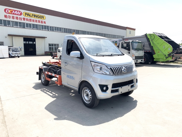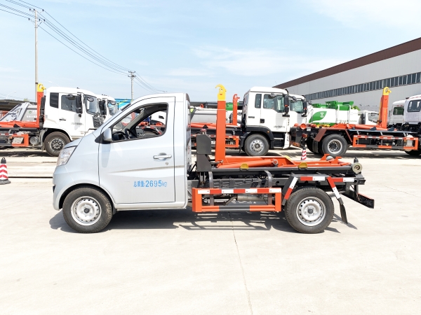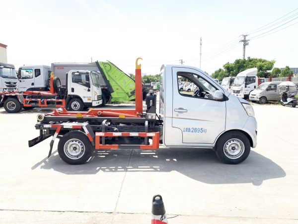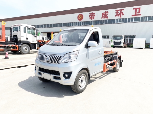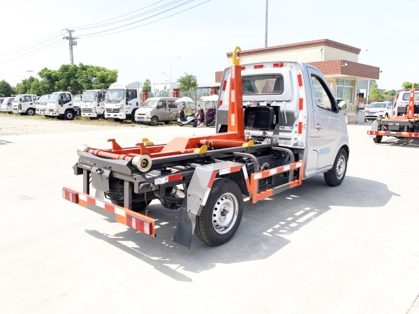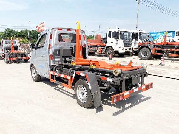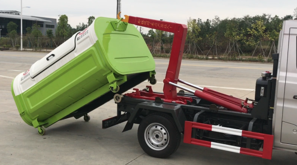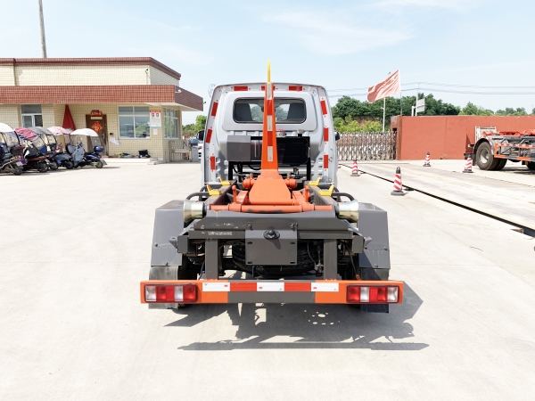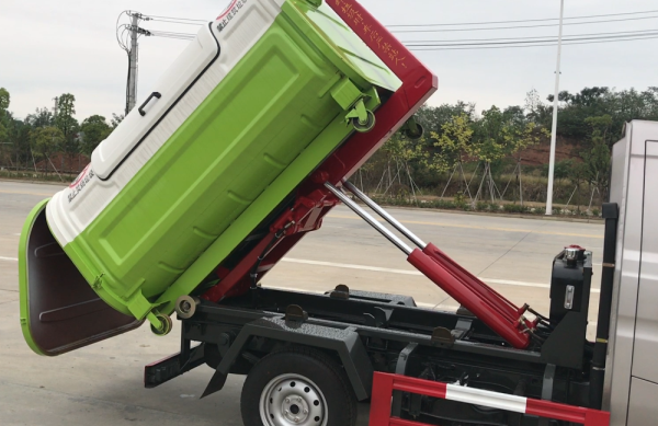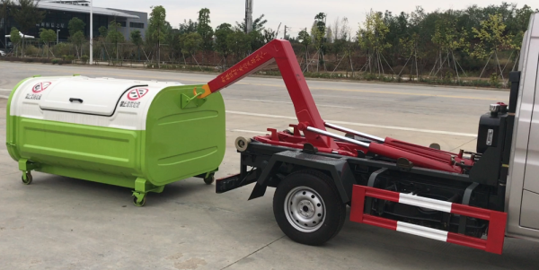 車廂可卸載式垃圾車,又稱勾臂式垃圾車、拉臂式垃圾車。該車廣泛適用與城市街道學(xué)校垃圾處理,可一車配備多個斗,各個垃圾點(diǎn)放置多個,帶自卸功能,液壓操作,方便傾倒。在平日里可將車載垃圾箱放置到各個垃圾收集站,待垃圾收集滿后,該車可直接開赴至垃圾站,通過液壓系統(tǒng)的操控,可將垃圾車后座上加裝的勾臂放下,掛住站內(nèi)垃圾箱前端的連接點(diǎn),將垃圾箱拉至車體的后座上,此時即可啟動車輛,將垃圾運(yùn)送至垃圾處理站內(nèi),進(jìn)行自卸式傾倒。該車主要的優(yōu)點(diǎn)就是可一車配多斗,一輛車就可以維持?jǐn)?shù)個垃圾收集站的運(yùn)轉(zhuǎn),效率高,且箱體為密封式設(shè)計(jì),不會造成二次污染。