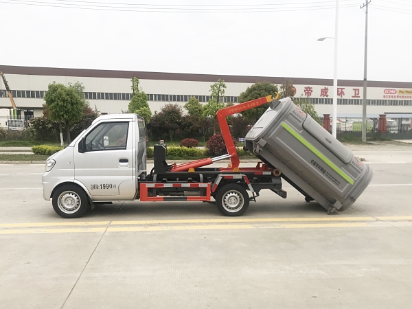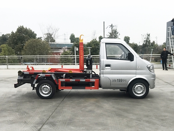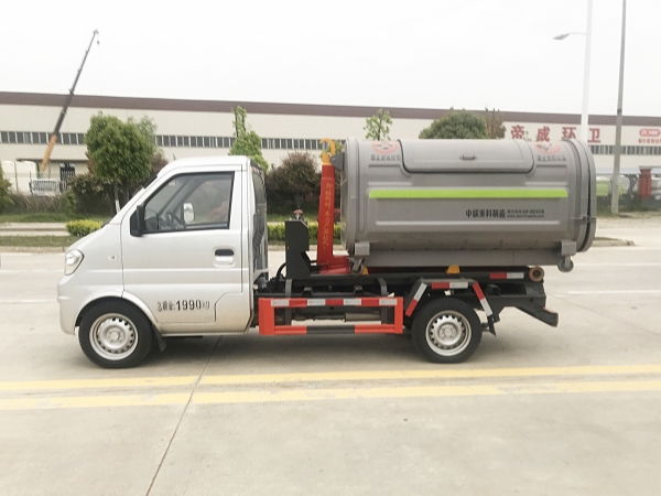 車廂可卸載式垃圾車,又稱勾臂式垃圾車、拉臂式垃圾車。該車廣泛適用與城市街道學(xué)校垃圾處理,可一車配備多個斗,各個垃圾點放置多個,帶自卸功能,液壓操作,方便傾倒。在平日里可將車載垃圾箱放置到各個垃圾收集站,待垃圾收集滿后,該車可直接開赴至垃圾站,通過液壓系統(tǒng)的操控,可將垃圾車后座上加裝的勾臂放下,掛住站內(nèi)垃圾箱前端的連接點,將垃圾箱拉至車體的后座上,此時即可啟動車輛,將垃圾運送至垃圾處理站內(nèi),進行自卸式傾倒。該車主要的優(yōu)點就是可一車配多斗,一輛車就可以維持數(shù)個垃圾收集站的運轉(zhuǎn),效率高,且箱體為密封式設(shè)計,不會造成二次污染。