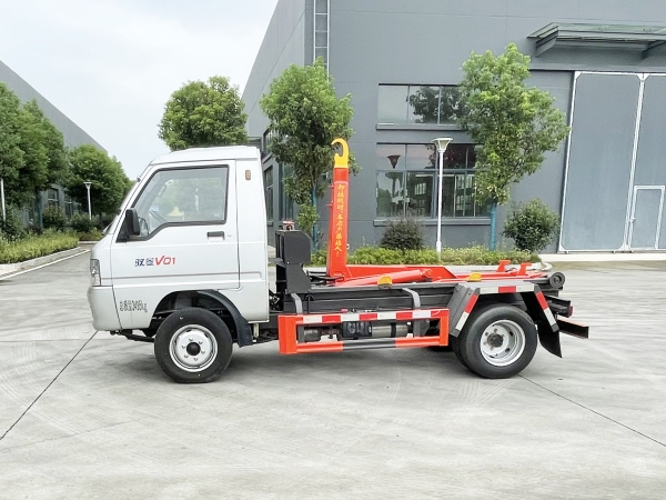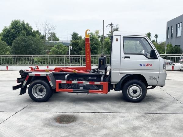 車廂可卸載式垃圾車,又稱勾臂式垃圾車、拉臂式垃圾車。該車廣泛適用與城市街道學校垃圾處理,可一車配備多個斗,各個垃圾點放置多個,帶自卸功能,液壓操作,方便傾倒。在平日里可將車載垃圾箱放置到各個垃圾收集站,待垃圾收集滿后,該車可直接開赴至垃圾站,通過液壓系統(tǒng)的操控,可將垃圾車后座上加裝的勾臂放下,掛住站內(nèi)垃圾箱前端的連接點,將垃圾箱拉至車體的后座上,此時即可啟動車輛,將垃圾運送至垃圾處理站內(nèi),進行自卸式傾倒。該車主要的優(yōu)點就是可一車配多斗,一輛車就可以維持數(shù)個垃圾收集站的運轉(zhuǎn),效率高,且箱體為密封式設計,不會造成二次污染。