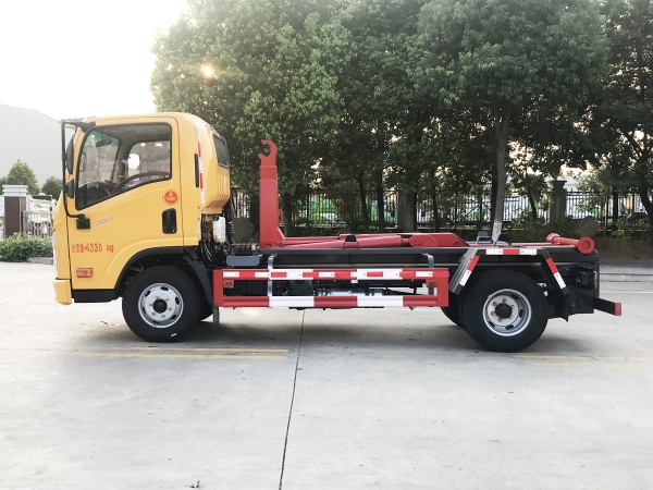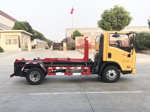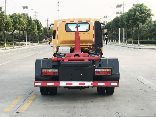車廂可卸載式垃圾車,又稱勾臂式垃圾車、拉臂式垃圾車。該車廣泛適用與城市街道學(xué)校垃圾處理,可一車配備多個斗,各個垃圾點放置多個,帶自卸功能,液壓操作,方便傾倒。在平日里可將車載垃圾箱放置到各個垃圾收集站,待垃圾收集滿后,該車可直接開赴至垃圾站,通過液壓系統(tǒng)的操控,可將垃圾車后座上加裝的勾臂放下,掛住站內(nèi)垃圾箱前端的連接點,將垃圾箱拉至車體的后座上,此時即可啟動車輛,將垃圾運送至垃圾處理站內(nèi),進行自卸式傾倒。該車主要的優(yōu)點就是可一車配多斗,一輛車就可以維持數(shù)個垃圾收集站的運轉(zhuǎn),效率高,且箱體為密封式設(shè)計,不會造成二次污染。