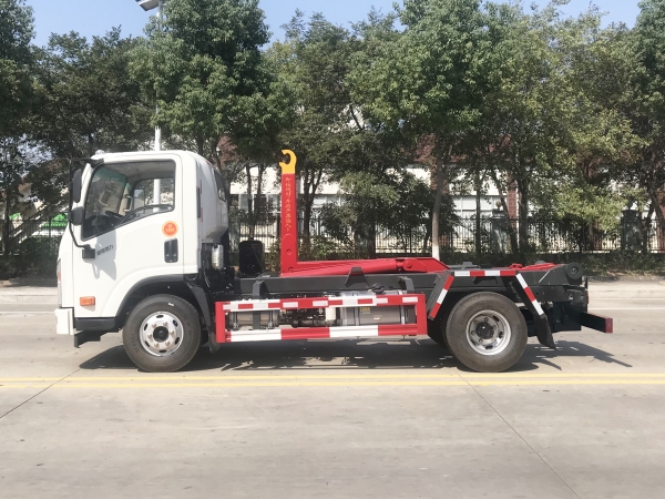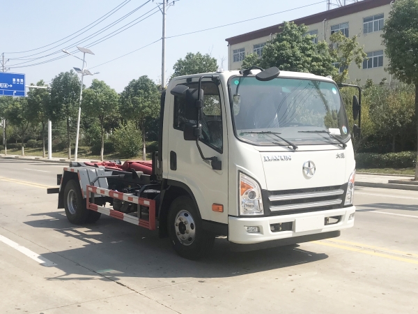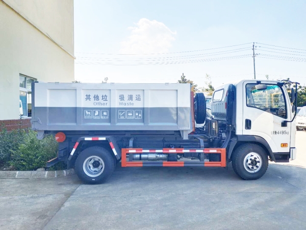 車廂可卸載式垃圾車,又稱勾臂式垃圾車、拉臂式垃圾車。該車廣泛適用與城市街道學校垃圾處理,可一車配備多個斗,各個垃圾點放置多個,帶自卸功能,液壓操作,方便傾倒。在平日里可將車載垃圾箱放置到各個垃圾收集站,待垃圾收集滿后,該車可直接開赴至垃圾站,通過液壓系統(tǒng)的操控,可將垃圾車后座上加裝的勾臂放下,掛住站內垃圾箱前端的連接點,將垃圾箱拉至車體的后座上,此時即可啟動車輛,將垃圾運送至垃圾處理站內,進行自卸式傾倒。該車主要的優(yōu)點就是可一車配多斗,一輛車就可以維持數(shù)個垃圾收集站的運轉,效率高,且箱體為密封式設計,不會造成二次污染。