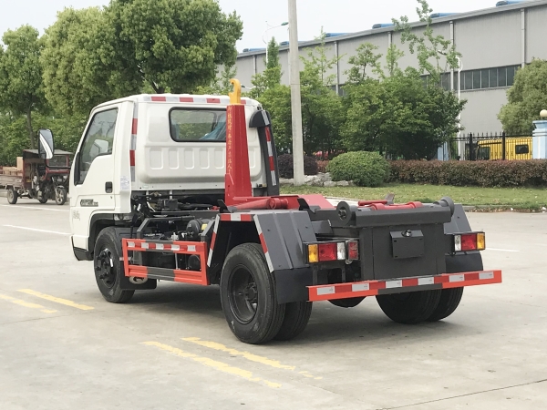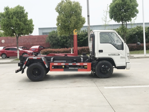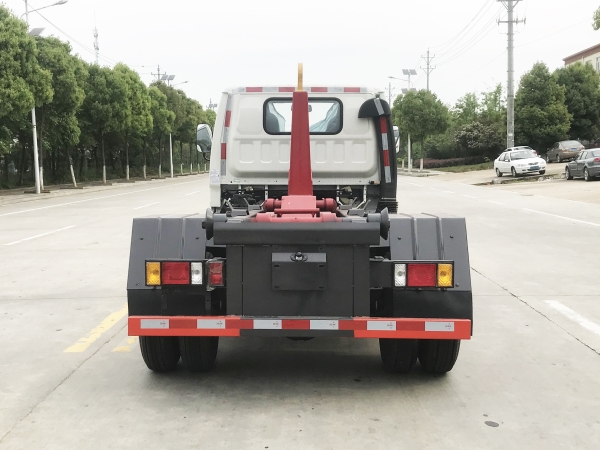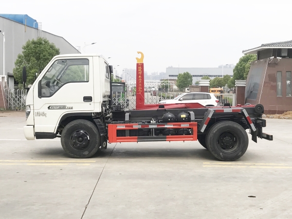 車廂可卸載式垃圾車,又稱勾臂式垃圾車、拉臂式垃圾車。該車廣泛適用與城市街道學校垃圾處理,可一車配備多個斗,各個垃圾點放置多個,帶自卸功能,液壓操作,方便傾倒。在平日里可將車載垃圾箱放置到各個垃圾收集站,待垃圾收集滿后,該車可直接開赴至垃圾站,通過液壓系統(tǒng)的操控,可將垃圾車后座上加裝的勾臂放下,掛住站內(nèi)垃圾箱前端的連接點,將垃圾箱拉至車體的后座上,此時即可啟動車輛,將垃圾運送至垃圾處理站內(nèi),進行自卸式傾倒。該車主要的優(yōu)點就是可一車配多斗,一輛車就可以維持數(shù)個垃圾收集站的運轉(zhuǎn),效率高,且箱體為密封式設計,不會造成二次污染。