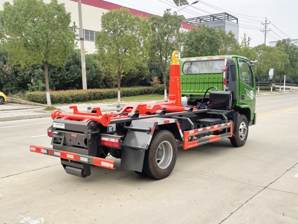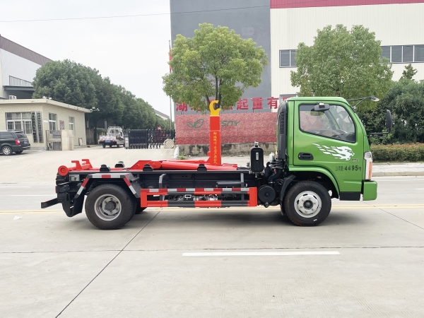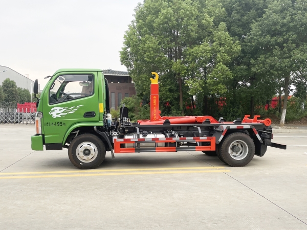 車廂可卸載式垃圾車,又稱勾臂式垃圾車、拉臂式垃圾車。該車廣泛適用與城市街道學校垃圾處理,可一車配備多個斗,各個垃圾點放置多個,帶自卸功能,液壓操作,方便傾倒。在平日里可將車載垃圾箱放置到各個垃圾收集站,待垃圾收集滿后,該車可直接開赴至垃圾站,通過液壓系統(tǒng)的操控,可將垃圾車后座上加裝的勾臂放下,掛住站內垃圾箱前端的連接點,將垃圾箱拉至車體的后座上,此時即可啟動車輛,將垃圾運送至垃圾處理站內,進行自卸式傾倒。該車主要的優(yōu)點就是可一車配多斗,一輛車就可以維持數(shù)個垃圾收集站的運轉,效率高,且箱體為密封式設計,不會造成二次污染。