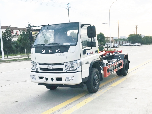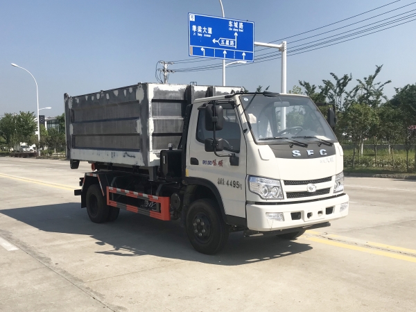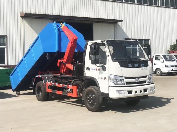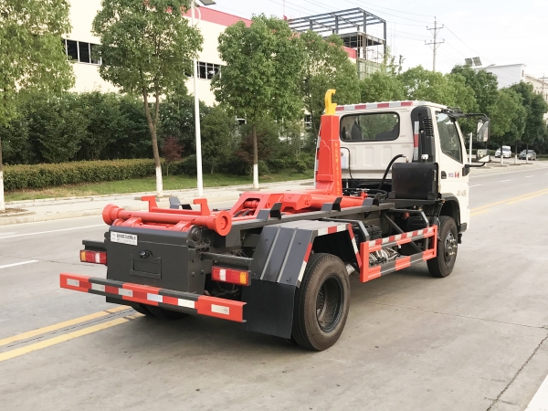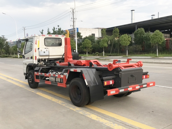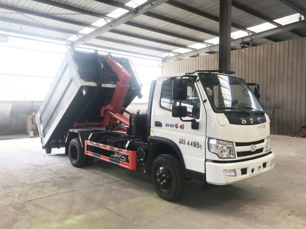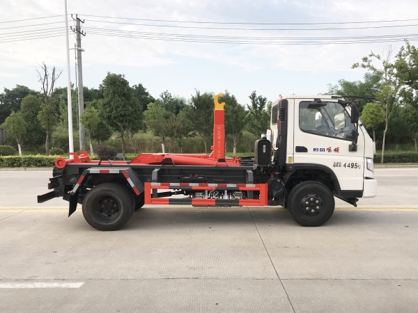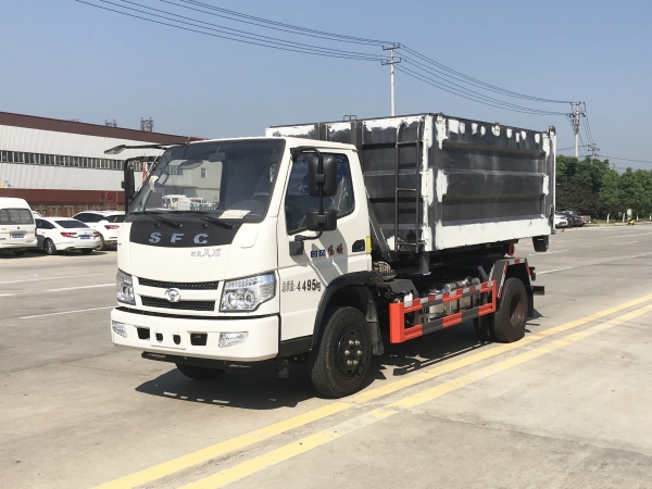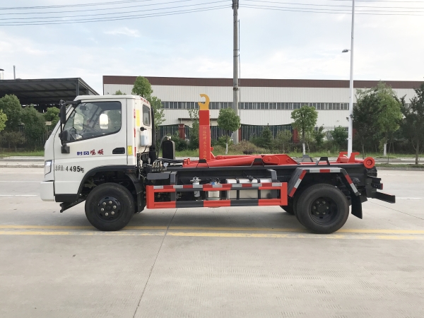 車廂可卸載式垃圾車,又稱勾臂式垃圾車、拉臂式垃圾車。該車廣泛適用與城市街道學校垃圾處理,可一車配備多個斗,各個垃圾點放置多個,帶自卸功能,液壓操作,方便傾倒。在平日里可將車載垃圾箱放置到各個垃圾收集站,待垃圾收集滿后,該車可直接開赴至垃圾站,通過液壓系統(tǒng)的操控,可將垃圾車后座上加裝的勾臂放下,掛住站內(nèi)垃圾箱前端的連接點,將垃圾箱拉至車體的后座上,此時即可啟動車輛,將垃圾運送至垃圾處理站內(nèi),進行自卸式傾倒。該車主要的優(yōu)點就是可一車配多斗,一輛車就可以維持數(shù)個垃圾收集站的運轉(zhuǎn),效率高,且箱體為密封式設(shè)計,不會造成二次污染。