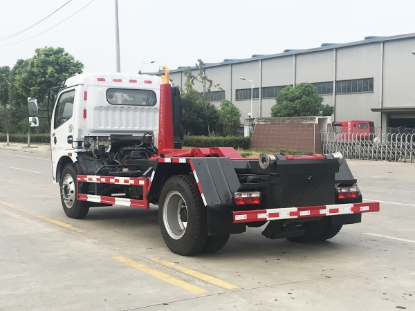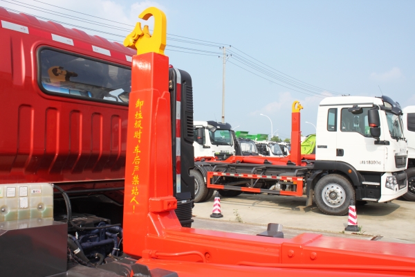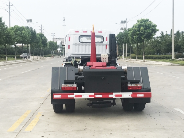 車廂可卸載式垃圾車,又稱勾臂式垃圾車、拉臂式垃圾車。該車廣泛適用與城市街道學(xué)校垃圾處理,可一車配備多個斗,各個垃圾點放置多個,帶自卸功能,液壓操作,方便傾倒。在平日里可將車載垃圾箱放置到各個垃圾收集站,待垃圾收集滿后,該車可直接開赴至垃圾站,通過液壓系統(tǒng)的操控,可將垃圾車后座上加裝的勾臂放下,掛住站內(nèi)垃圾箱前端的連接點,將垃圾箱拉至車體的后座上,此時即可啟動車輛,將垃圾運送至垃圾處理站內(nèi),進行自卸式傾倒。該車主要的優(yōu)點就是可一車配多斗,一輛車就可以維持數(shù)個垃圾收集站的運轉(zhuǎn),效率高,且箱體為密封式設(shè)計,不會造成二次污染。