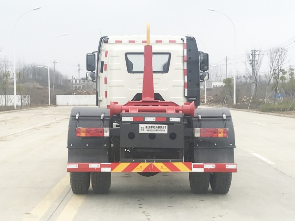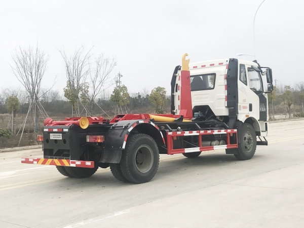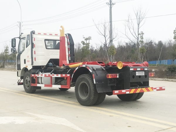 車廂可卸載式垃圾車,又稱勾臂式垃圾車、拉臂式垃圾車。該車廣泛適用與城市街道學校垃圾處理,可一車配備多個斗,各個垃圾點放置多個,帶自卸功能,液壓操作,方便傾倒。在平日里可將車載垃圾箱放置到各個垃圾收集站,待垃圾收集滿后,該車可直接開赴至垃圾站,通過液壓系統(tǒng)的操控,可將垃圾車后座上加裝的勾臂放下,掛住站內垃圾箱前端的連接點,將垃圾箱拉至車體的后座上,此時即可啟動車輛,將垃圾運送至垃圾處理站內,進行自卸式傾倒。該車主要的優(yōu)點就是可一車配多斗,一輛車就可以維持數(shù)個垃圾收集站的運轉,效率高,且箱體為密封式設計,不會造成二次污染。