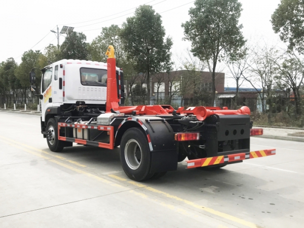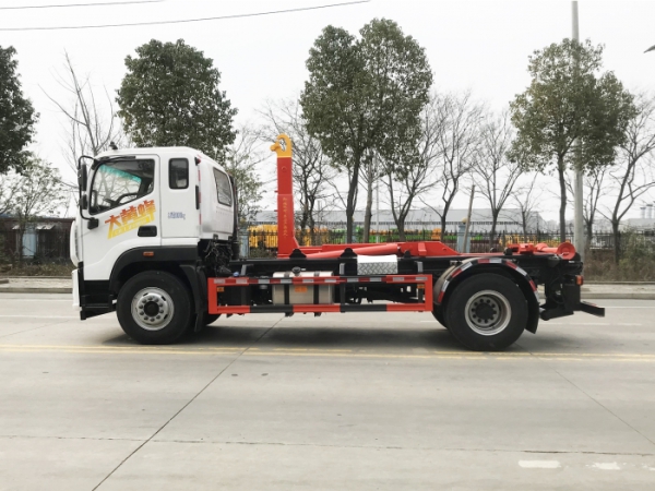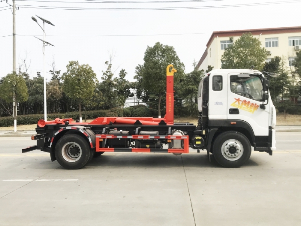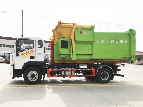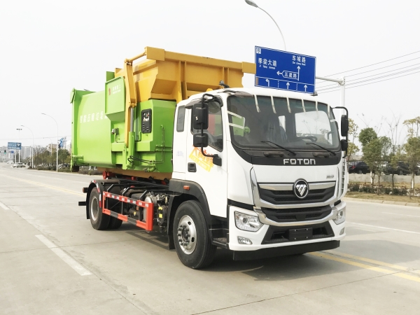 車廂可卸載式垃圾車,又稱勾臂式垃圾車、拉臂式垃圾車。該車廣泛適用與城市街道學(xué)校垃圾處理,可一車配備多個(gè)斗,各個(gè)垃圾點(diǎn)放置多個(gè),帶自卸功能,液壓操作,方便傾倒。在平日里可將車載垃圾箱放置到各個(gè)垃圾收集站,待垃圾收集滿后,該車可直接開赴至垃圾站,通過液壓系統(tǒng)的操控,可將垃圾車后座上加裝的勾臂放下,掛住站內(nèi)垃圾箱前端的連接點(diǎn),將垃圾箱拉至車體的后座上,此時(shí)即可啟動(dòng)車輛,將垃圾運(yùn)送至垃圾處理站內(nèi),進(jìn)行自卸式傾倒。該車主要的優(yōu)點(diǎn)就是可一車配多斗,一輛車就可以維持?jǐn)?shù)個(gè)垃圾收集站的運(yùn)轉(zhuǎn),效率高,且箱體為密封式設(shè)計(jì),不會造成二次污染。