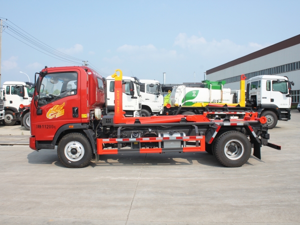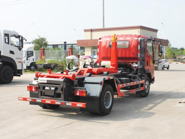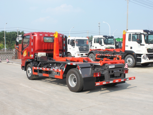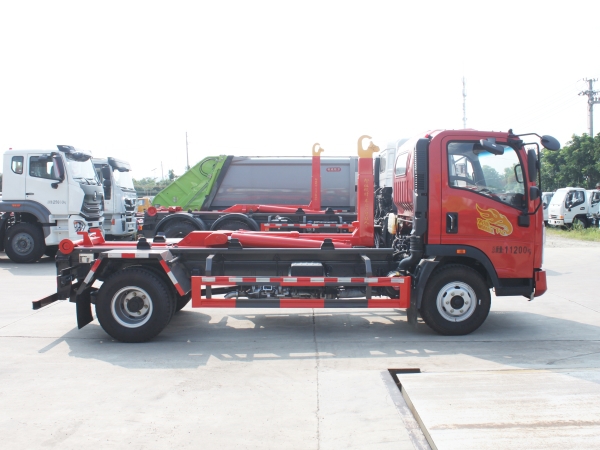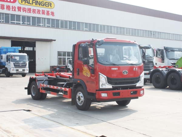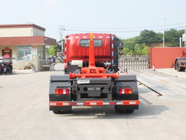 車廂可卸載式垃圾車,又稱勾臂式垃圾車、拉臂式垃圾車。該車廣泛適用與城市街道學校垃圾處理,可一車配備多個斗,各個垃圾點放置多個,帶自卸功能,液壓操作,方便傾倒。在平日里可將車載垃圾箱放置到各個垃圾收集站,待垃圾收集滿后,該車可直接開赴至垃圾站,通過液壓系統(tǒng)的操控,可將垃圾車后座上加裝的勾臂放下,掛住站內(nèi)垃圾箱前端的連接點,將垃圾箱拉至車體的后座上,此時即可啟動車輛,將垃圾運送至垃圾處理站內(nèi),進行自卸式傾倒。該車主要的優(yōu)點就是可一車配多斗,一輛車就可以維持數(shù)個垃圾收集站的運轉(zhuǎn),效率高,且箱體為密封式設(shè)計,不會造成二次污染。