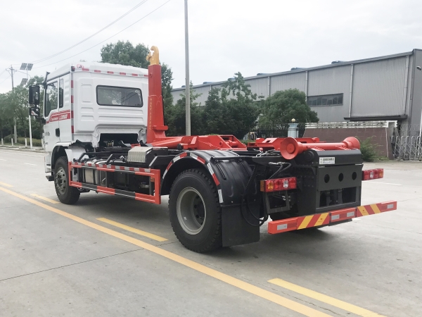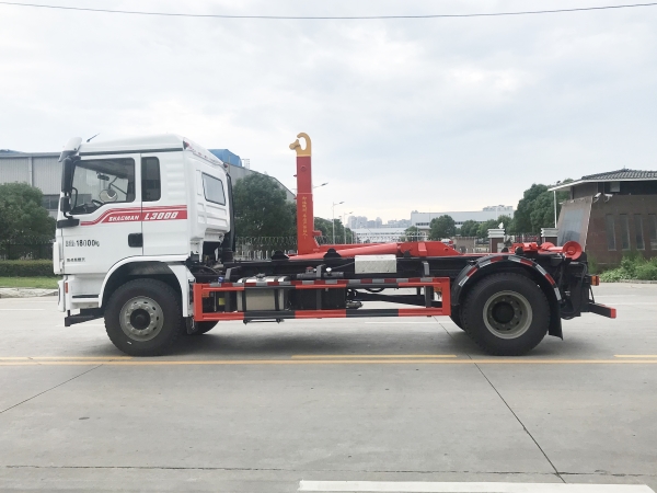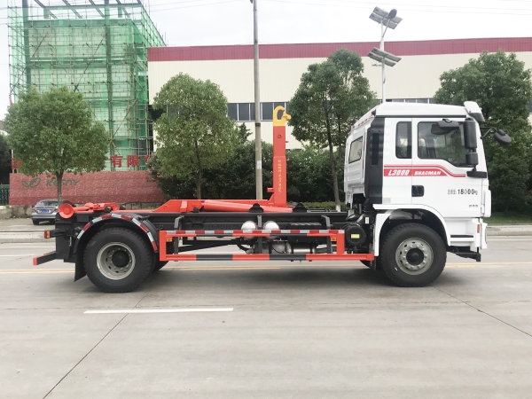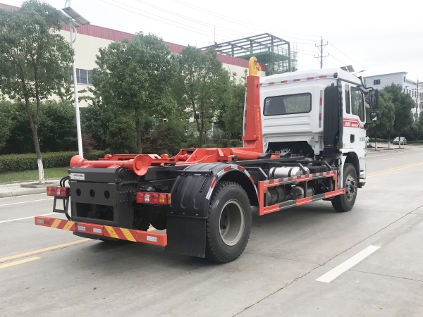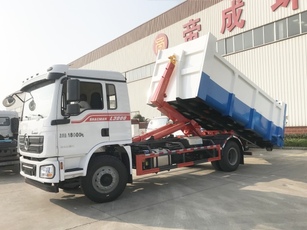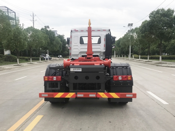 車廂可卸載式垃圾車,又稱勾臂式垃圾車、拉臂式垃圾車。該車廣泛適用與城市街道學(xué)校垃圾處理,可一車配備多個(gè)斗,各個(gè)垃圾點(diǎn)放置多個(gè),帶自卸功能,液壓操作,方便傾倒。在平日里可將車載垃圾箱放置到各個(gè)垃圾收集站,待垃圾收集滿后,該車可直接開(kāi)赴至垃圾站,通過(guò)液壓系統(tǒng)的操控,可將垃圾車后座上加裝的勾臂放下,掛住站內(nèi)垃圾箱前端的連接點(diǎn),將垃圾箱拉至車體的后座上,此時(shí)即可啟動(dòng)車輛,將垃圾運(yùn)送至垃圾處理站內(nèi),進(jìn)行自卸式傾倒。該車主要的優(yōu)點(diǎn)就是可一車配多斗,一輛車就可以維持?jǐn)?shù)個(gè)垃圾收集站的運(yùn)轉(zhuǎn),效率高,且箱體為密封式設(shè)計(jì),不會(huì)造成二次污染。