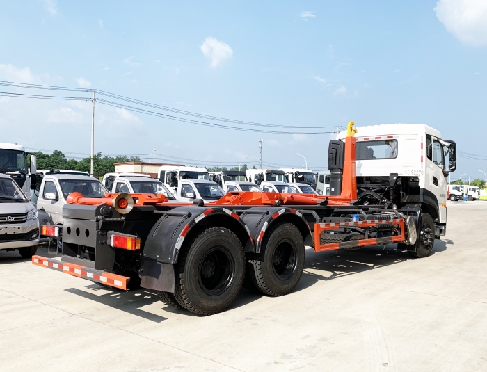 車廂可卸載式垃圾車,又稱勾臂式垃圾車、拉臂式垃圾車。該車廣泛適用與城市街道學(xué)校垃圾處理,可一車配備多個(gè)斗,各個(gè)垃圾點(diǎn)放置多個(gè),帶自卸功能,液壓操作,方便傾倒。在平日里可將車載垃圾箱放置到各個(gè)垃圾收集站,待垃圾收集滿后,該車可直接開赴至垃圾站,通過(guò)液壓系統(tǒng)的操控,可將垃圾車后座上加裝的勾臂放下,掛住站內(nèi)垃圾箱前端的連接點(diǎn),將垃圾箱拉至車體的后座上,此時(shí)即可啟動(dòng)車輛,將垃圾運(yùn)送至垃圾處理站內(nèi),進(jìn)行自卸式傾倒。該車主要的優(yōu)點(diǎn)就是可一車配多斗,一輛車就可以維持?jǐn)?shù)個(gè)垃圾收集站的運(yùn)轉(zhuǎn),效率高,且箱體為密封式設(shè)計(jì),不會(huì)造成二次污染。