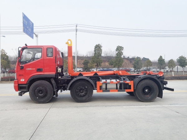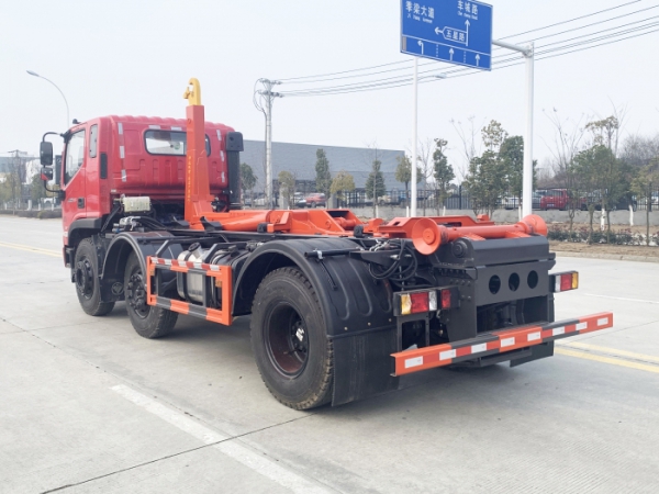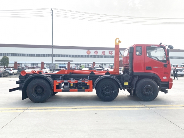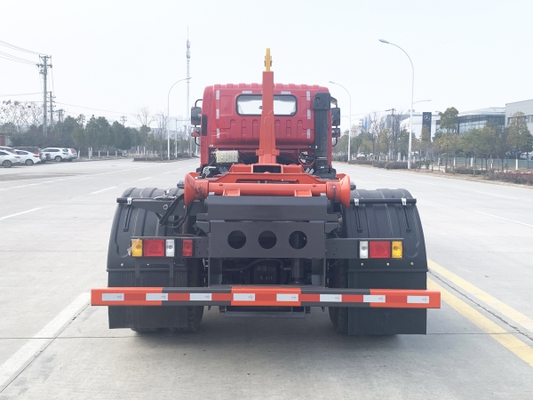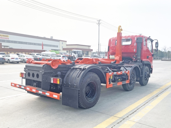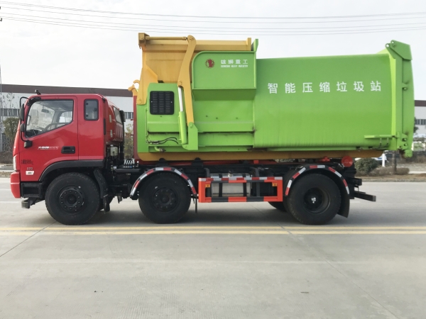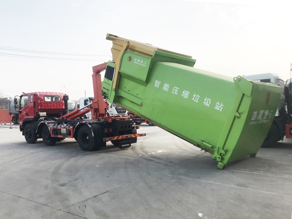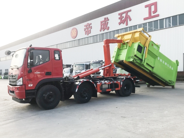 車廂可卸載式垃圾車,又稱勾臂式垃圾車、拉臂式垃圾車。該車廣泛適用與城市街道學(xué)校垃圾處理,可一車配備多個(gè)斗,各個(gè)垃圾點(diǎn)放置多個(gè),帶自卸功能,液壓操作,方便傾倒。在平日里可將車載垃圾箱放置到各個(gè)垃圾收集站,待垃圾收集滿后,該車可直接開赴至垃圾站,通過(guò)液壓系統(tǒng)的操控,可將垃圾車后座上加裝的勾臂放下,掛住站內(nèi)垃圾箱前端的連接點(diǎn),將垃圾箱拉至車體的后座上,此時(shí)即可啟動(dòng)車輛,將垃圾運(yùn)送至垃圾處理站內(nèi),進(jìn)行自卸式傾倒。該車主要的優(yōu)點(diǎn)就是可一車配多斗,一輛車就可以維持?jǐn)?shù)個(gè)垃圾收集站的運(yùn)轉(zhuǎn),效率高,且箱體為密封式設(shè)計(jì),不會(huì)造成二次污染。