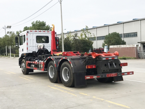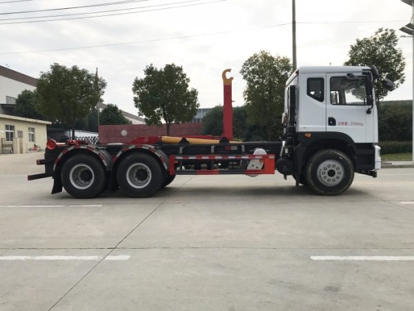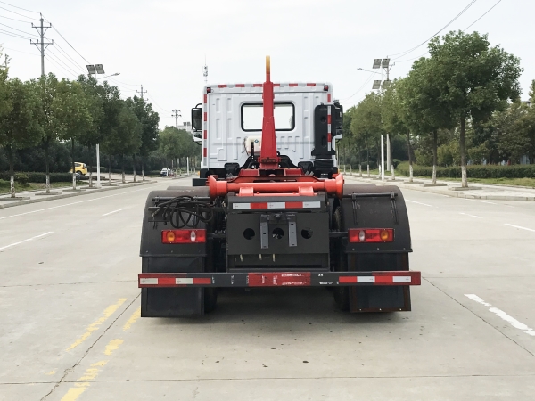 車廂可卸載式垃圾車,又稱勾臂式垃圾車、拉臂式垃圾車。該車廣泛適用與城市街道學(xué)校垃圾處理,可一車配備多個(gè)斗,各個(gè)垃圾點(diǎn)放置多個(gè),帶自卸功能,液壓操作,方便傾倒。在平日里可將車載垃圾箱放置到各個(gè)垃圾收集站,待垃圾收集滿后,該車可直接開赴至垃圾站,通過液壓系統(tǒng)的操控,可將垃圾車后座上加裝的勾臂放下,掛住站內(nèi)垃圾箱前端的連接點(diǎn),將垃圾箱拉至車體的后座上,此時(shí)即可啟動(dòng)車輛,將垃圾運(yùn)送至垃圾處理站內(nèi),進(jìn)行自卸式傾倒。該車主要的優(yōu)點(diǎn)就是可一車配多斗,一輛車就可以維持?jǐn)?shù)個(gè)垃圾收集站的運(yùn)轉(zhuǎn),效率高,且箱體為密封式設(shè)計(jì),不會(huì)造成二次污染。