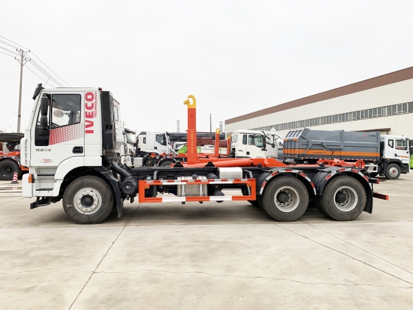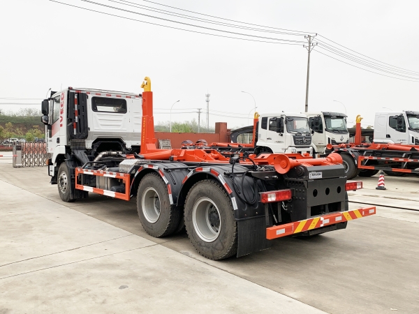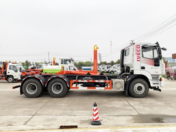 車廂可卸載式垃圾車,又稱勾臂式垃圾車、拉臂式垃圾車。該車廣泛適用與城市街道學(xué)校垃圾處理,可一車配備多個(gè)斗,各個(gè)垃圾點(diǎn)放置多個(gè),帶自卸功能,液壓操作,方便傾倒。在平日里可將車載垃圾箱放置到各個(gè)垃圾收集站,待垃圾收集滿后,該車可直接開(kāi)赴至垃圾站,通過(guò)液壓系統(tǒng)的操控,可將垃圾車后座上加裝的勾臂放下,掛住站內(nèi)垃圾箱前端的連接點(diǎn),將垃圾箱拉至車體的后座上,此時(shí)即可啟動(dòng)車輛,將垃圾運(yùn)送至垃圾處理站內(nèi),進(jìn)行自卸式傾倒。該車主要的優(yōu)點(diǎn)就是可一車配多斗,一輛車就可以維持?jǐn)?shù)個(gè)垃圾收集站的運(yùn)轉(zhuǎn),效率高,且箱體為密封式設(shè)計(jì),不會(huì)造成二次污染。