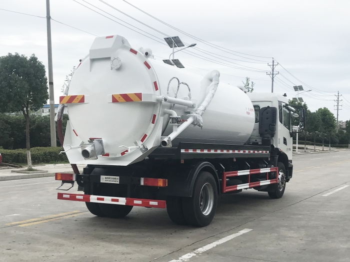 | 1.該車用于下水道淤積物抽吸,運輸和排卸等作業(yè),主要專用裝置為罐體,真空泵;2.整車長(mm)/軸距(mm)的對應關系分別為:8250/5000,7950/4700,7750/4500;罐體外形尺寸(直徑×直段長)(mm):φ1760×4700,φ1800×4500罐體有效容積:11.29立方米;3.側,后防護材料均采用Q235碳鋼,連接方式為焊接加螺栓連接,后部防護斷面尺寸(mm):120×60,離地高度480mm;4.ABS型號/生產廠家:3631010-C2000/東科克諾爾商用車制動系統(tǒng)(十堰)有限公司,ABS 8/東科克諾爾商用車制動系統(tǒng)(十堰)有限公司, 4460046450/威伯科汽車系統(tǒng)()有限公司;6.隨底盤選裝高度不同的駕駛室;選裝前霧燈;選裝駕駛室頂部裝飾燈;選裝駕駛室前面罩;選裝前保險杠及前部燈具,選裝后視鏡;選裝后部燈具;駕駛室前臉擾流罩為選裝件;駕駛室臥鋪側窗選裝裝飾板;選裝踏步結構;選裝后背式排氣管. | |||