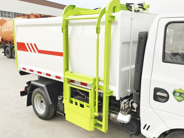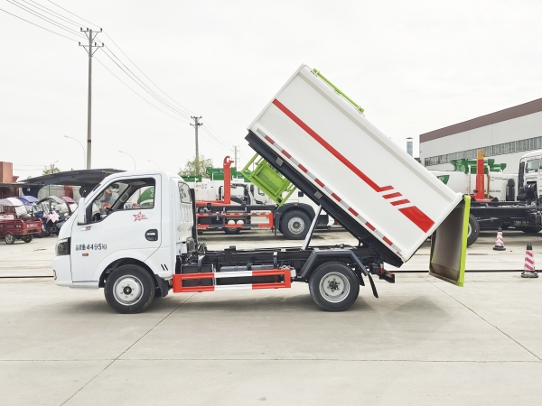 自裝卸式垃圾車是收集、中轉(zhuǎn)清理運(yùn)輸垃圾,避免二次污染的新型環(huán)衛(wèi)車輛,其主要特點(diǎn)是垃圾收集方式簡便、高效、環(huán)保性好,整車?yán)眯矢撸瑥V泛適用于環(huán)衛(wèi)、市政、物業(yè)小區(qū)、垃圾多而集中的居民區(qū)、城市街道垃圾處理,均具有密封自卸功能,液壓操作,傾卸垃圾方便。 在底盤的基礎(chǔ)上,加裝垃圾箱體、連接附件、防護(hù)欄及液壓系統(tǒng)等裝置。具有操作安全、使用性能穩(wěn)定、返修率低、售后服務(wù)及時(shí)周到等特點(diǎn)。本產(chǎn)品主要用于收集與轉(zhuǎn)運(yùn)城市住宅小區(qū)、鄉(xiāng)鎮(zhèn)街道等產(chǎn)生的生活垃圾。整車小巧靈活,行動方便,適應(yīng)人流密集的商業(yè)區(qū)域和道路交通情況較差的城鄉(xiāng)地區(qū)。本車配有側(cè)掛桶進(jìn)料機(jī)構(gòu),在翻桶處操作,可與120L/240L標(biāo)準(zhǔn)塑料桶對接。整車具有自卸功能,卸料方便。